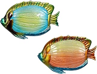 LiffyGift Metal Fish Wall Decor Sculpture Glass Art Hanging for Indoor Bathroom Outdoor Beach Coastal Garden or Pool,Patio,Living Room,Set of 2