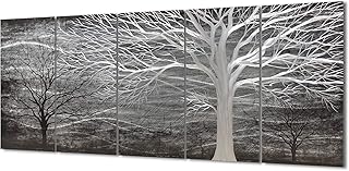 Yihui Arts Tree Metal Wall Art For Living Room Black Grey Silver Color Pictuers For Decor